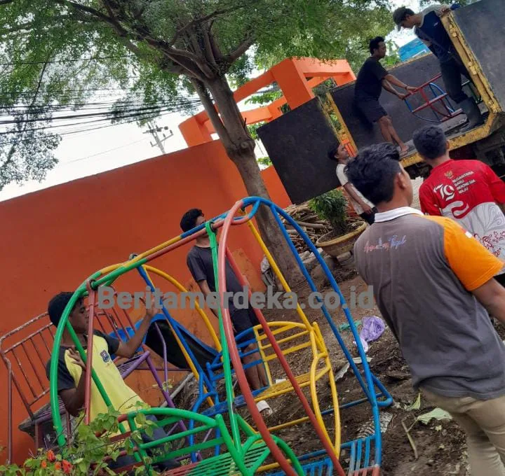 “Terkait barang-barang seperti ayunan, plosotan, undar mini dan jungkat jungkit yang sempat dijarah masa. Alkhamdulillah siang harinya dapat kami amankan. Barang tersebut ditemukan tergeletak di ruas jalan Slamet Riyadi.”ucap Maman.
