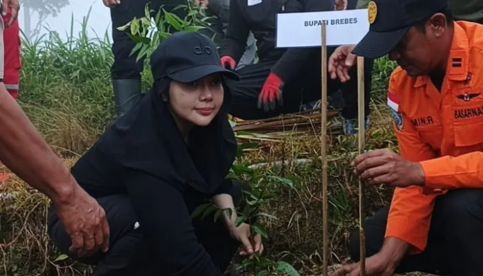 Bupati Brebes Hj Paramitha Widya Kusuma SE MM hadir langsung dan ikut menanam pohon bersama Kapolres Brebes AKBP Lilik Ardhiansyah, Kepala Dinas Lingkungan Hidup Kabupaten Brebes Mochammad Sodiq, serta 70 aliansi relawan pecinta alam dari berbagai komunitas.