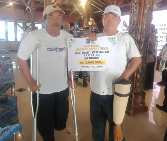 Beritamerdeka.co.id – Darto (49) warga Kalurahan Muarareja dan Warna (67) warga Kelurahan Margadana, kini dapat beraktivitas dengan lebih nyaman setelah menerima bantuan alat jalan (kaki palsu) dari Baznas Kota Tegal.