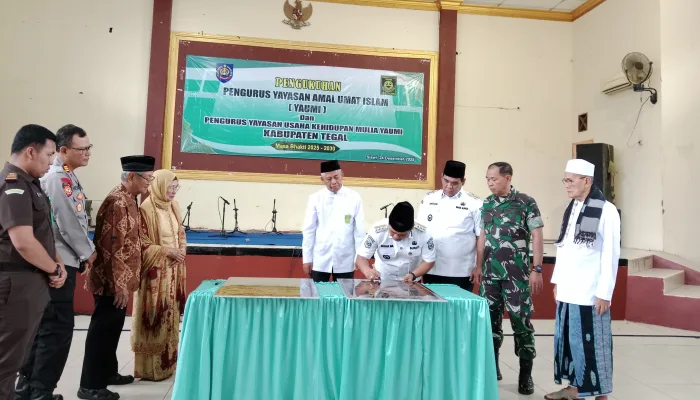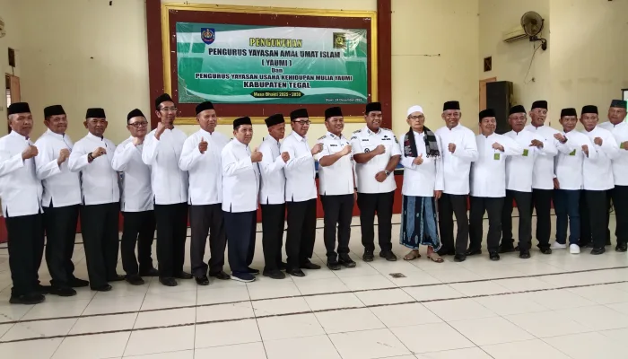 BeritaMerdeka.co.id – Pengurus Yayasan Amal Umat Islam (YAUMI) Kabupaten Tegal periode 2025–2030 resmi dikukuhkan oleh Bupati Tegal, Ischak Maulana Rohman, dalam sebuah prosesi khidmat yang digelar di Gedung YAUMI, Rabu 24 Desember 2025.