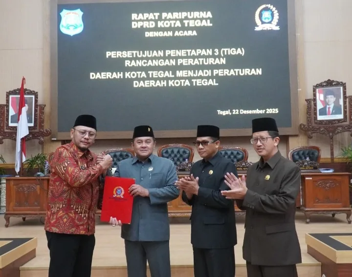 Beritamerdeka.co.id – DPRD Kota Tegal menetapkan tiga Raperda menjadi Peraturan Daerah (Perda) yang digelar di Ruang Rapat Paripurna, Senin, 22 Desember 2025.