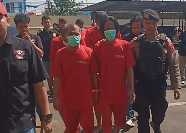 Beberapa tersangka yang berhasil diamankan dihadirkan saat konferensi pers berlangsung. Selasa 23 September 2025