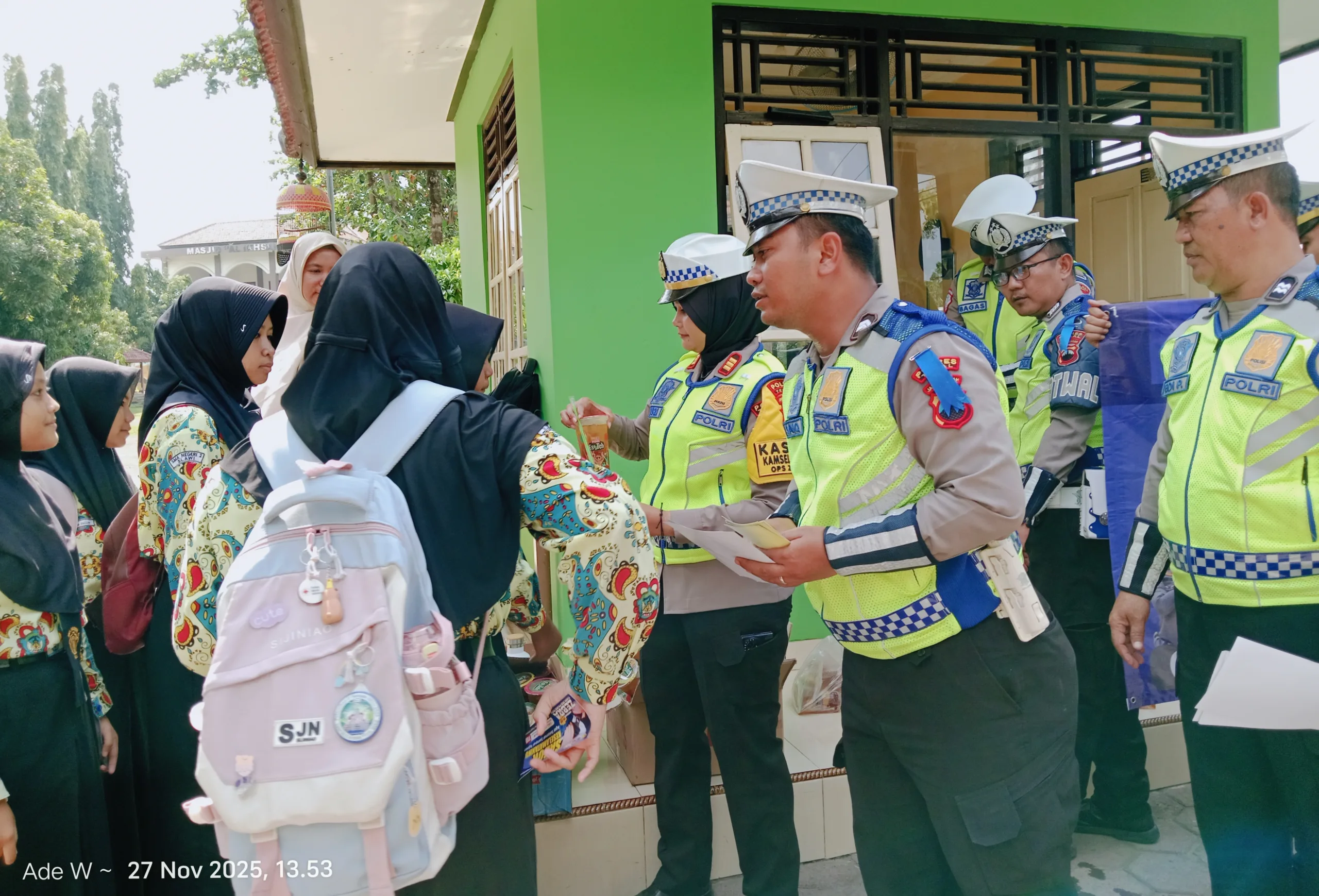 Kegiatan dipimpin oleh Kasat Lantas Polres Tegal AKP Bharatungga Dharuning Pawuri, didampingi Kanit Kamsel Ipda Bares dan Kanit Gakkum Ipda Henry Ade Birawan, di SMA Negeri 2 Slawi, Kamis 27 November 2025.