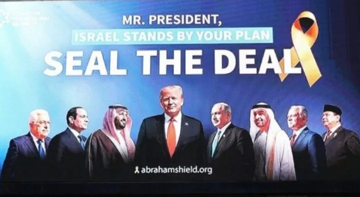 Pesan tulisan pada baliho tersebut berbunyi: “Yes to Trump’s Plan – GET IT DONE.” diunggah akun X @AbrahamShield25, yang menyebut bahwa Koalisi Israel untuk Keamanan Regional meluncurkan kampanye papan reklame guna mendorong pemerintah Israel mendukung inisiatif Trump mengakhiri perang di Gaza dan memperluas Perjanjian Abraham.