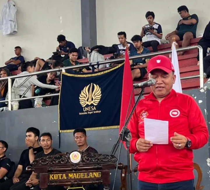 Beritamerdeka.co.id – Ketua Shiroite Karatedo Jawa Tengah, Muhamad Jumadi (eks Wakil Wali Kota Tegal) beri sambutan dalam Magelang International Karate Championship 2.