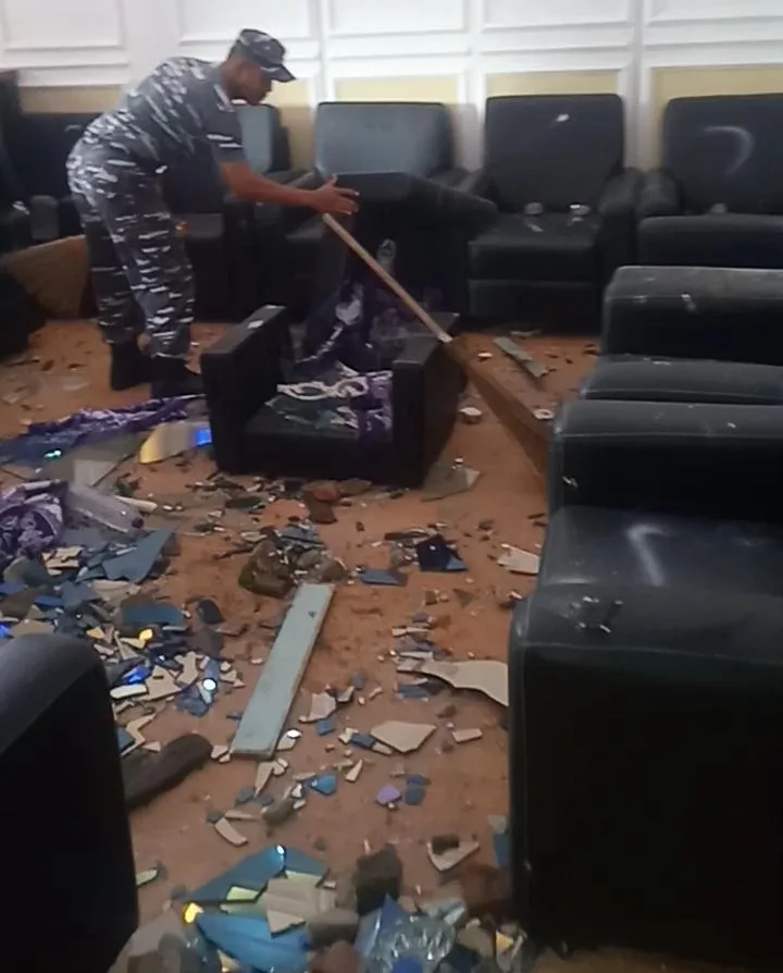 Pantauan dipagi harinya paska demo Mako Polres Tegal Kota semua anggota polisi membersihkan fasilitas yang dirusak massa.