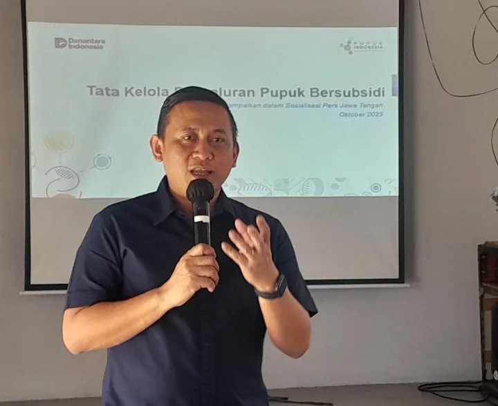 Manajer Penjualan Pupuk Indonesia Jateng 2, Safari Yusuf menyampaikan data alokasi ketersediaan pupuk bersubsidi yang telah tersalurkan dalam satu tahun.