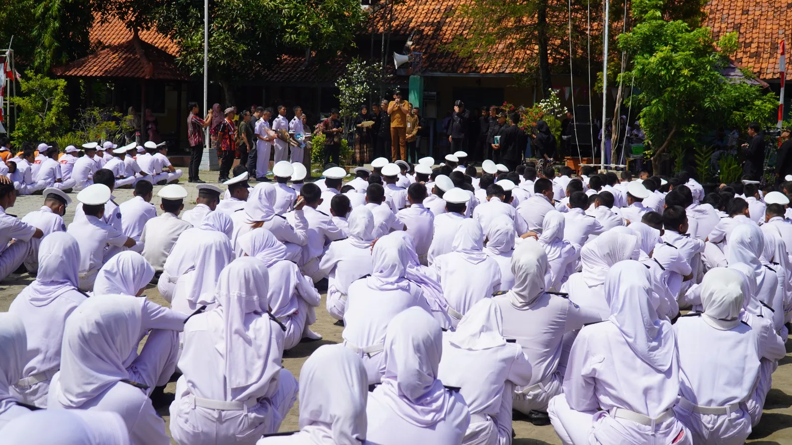 Siswa SMK Negeri 3 Kota Tegal sedang mendengarkan paparan dari walikota Tegal saat apel berlangsung