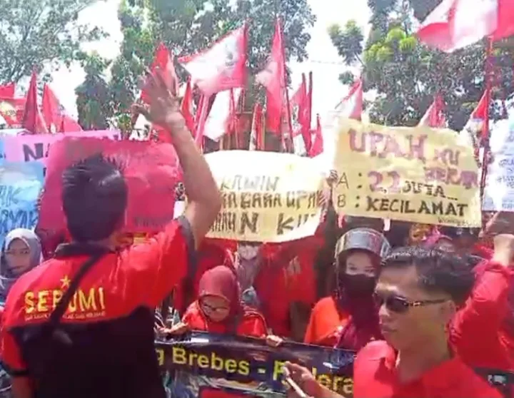 Beritamerdeka.co.id – Ratusan buruh di Brebes dari dua serikat pekerja besar, SPN dan SEBUMI menggelar aksi demonstrasi besar, Rabu, 19 November 2025.