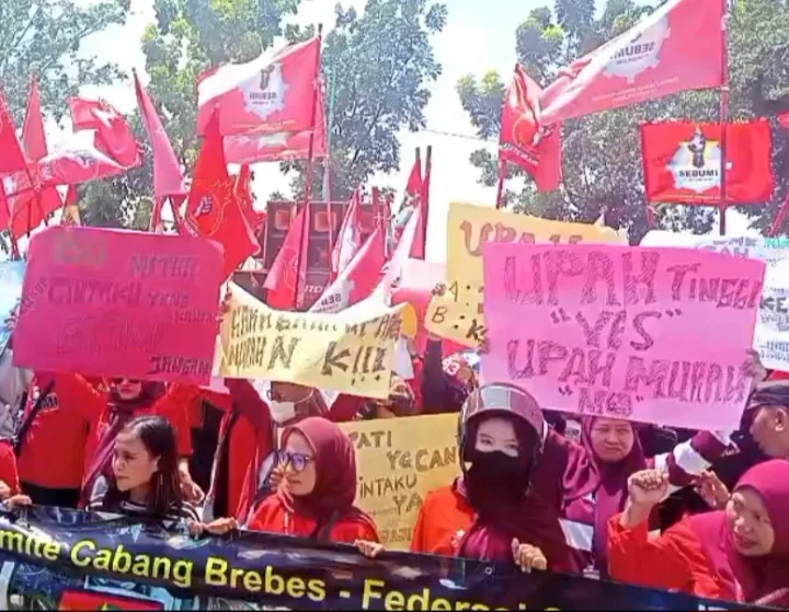 Para buruh menuntut agar besaran UMK Brebes yang saat ini berada di angka Rp2.239.801 dinaikkan secara drastis menjadi Rp3.500.000.
