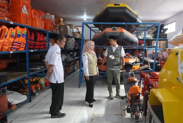 Wakil Wali Kota mengecek peralatan yang ada di Mako Pusdalops PB, termasuk kesiapan peralatan bantuan yang sewaktu-waktu siap untuk disalurkan.