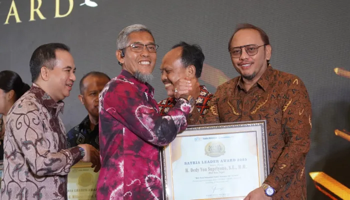 Walikota Tegal Dedy Yon Supriyono menerima penghargaan Satria Leader Award dalan ajang pemilihan Pemimpin Jawa Tengah 2025.